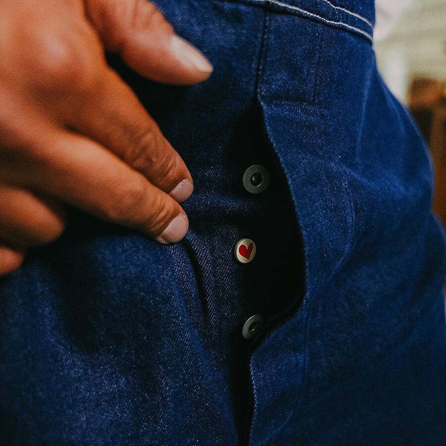 という事で【下心リベット】と名付けた隠しリベットをジーンズとオーバーオールに使用。