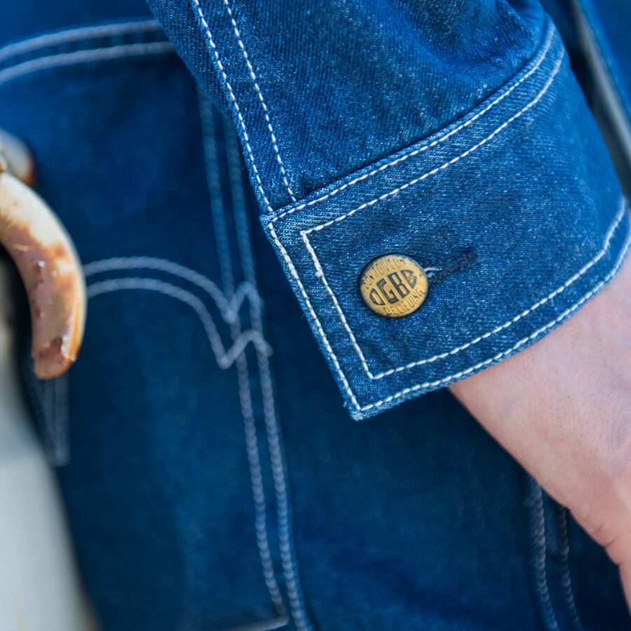 オーバーオール、カバーオールと同じ10ozの高品質デニムを使用。