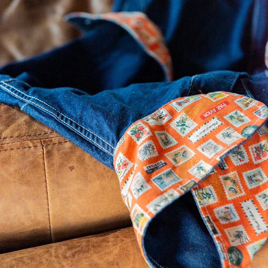 厳選したUSコットンを襟、袖、フラップのそれぞの裏地として使用し、唯一無二のdenim。